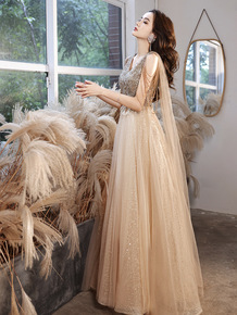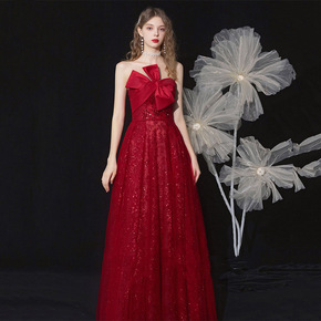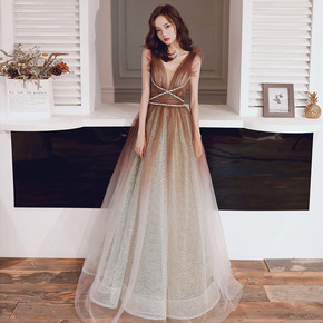 宴会晚礼服2022春季新款优雅名媛主持人晚礼服质感...