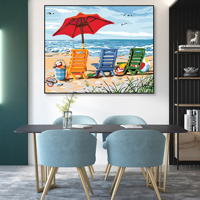 盘古油画 40*50无框盒装数字画沙滩椅子油画 p...