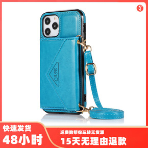 适用苹果iphone12三角斜挎手机壳多功能插卡皮...