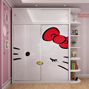 现代简约推拉门衣柜卡通儿童男女孩木质可爱组合卧室整...