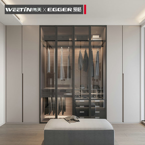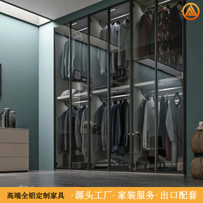 适用保墨上海同城衣柜整体衣帽间现代极简约玻璃开门全...