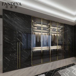 范迪亚衣柜轻奢风格整体家具衣橱黑色大理石高光亮光柜...