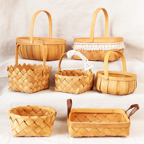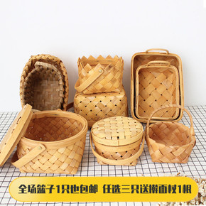 野餐篮户外提篮春游竹编篮子收纳筐幼儿园编织水果鸡蛋...