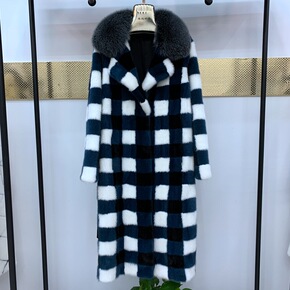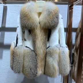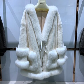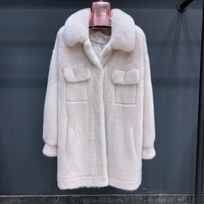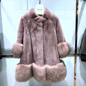 2021新款天鹅绒水貂貂皮大衣女整貂翻领狐狸毛时尚...