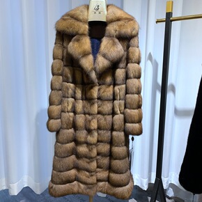 高端过膝貂皮大衣女整貂长款狐狸毛领水貂皮草外套20...