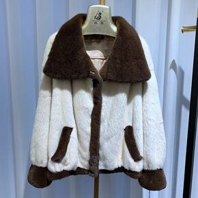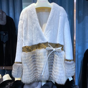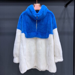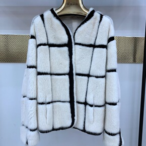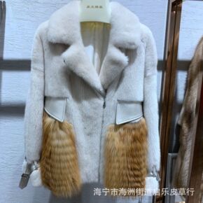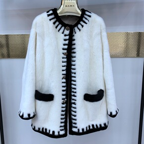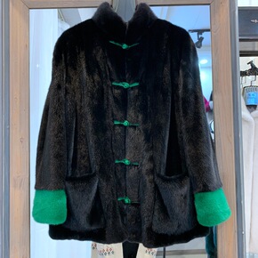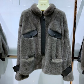 海宁2021冬季新款时尚年轻款皮草水貂整貂撞色外套...