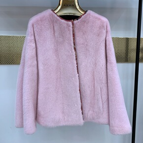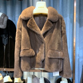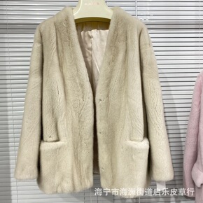 时尚天鹅绒貂皮大衣女短款整貂海宁水貂毛皮草外套20...