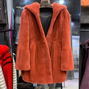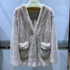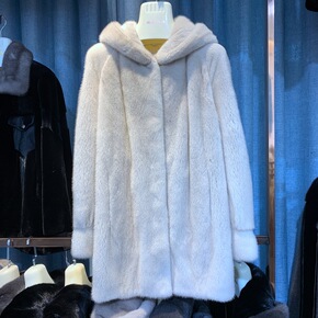 2021新款海宁天鹅绒水貂皮草外套中长款连帽貂皮大...