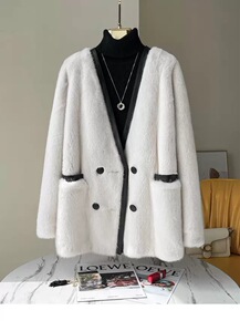 2021新款天鹅绒水貂貂皮大衣女整貂V领时尚休闲气...