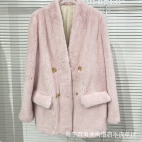 2021双排扣年轻中长款真水貂皮草外套天鹅绒貂皮大...