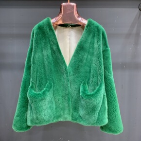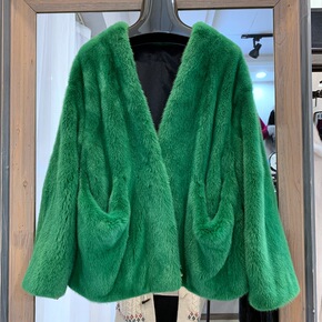 2021冬新款整貂天鹅绒V领彩貂皮大衣女年轻短款皮...