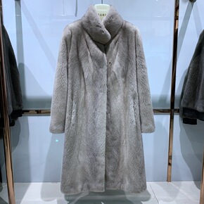 天鹅绒水貂貂皮大衣女整貂中长款V领皮草休闲外套20...