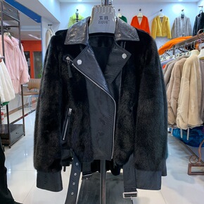 水貂毛皮草外套2021年新款皮机车整貂皮大衣女时尚...