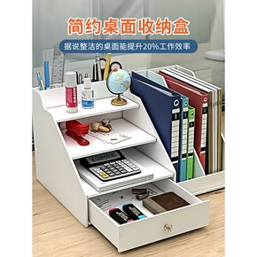 办公室桌面收纳盒抽屉工位神器文具用品整理好物笔筒文...