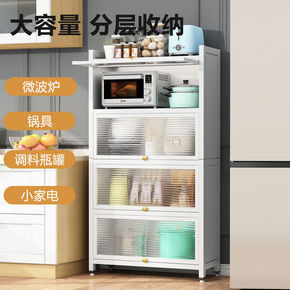 碗柜家用置物架带门储物柜厨房置物柜落地多功能锅具收...