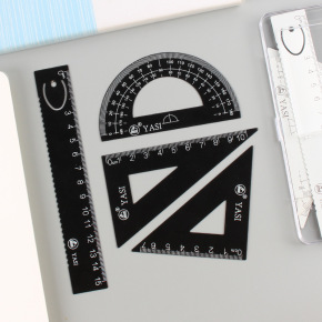 简约无印风金属套尺套装学生考试金属直尺+量角器+三...