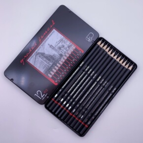 967素描铅笔套装跨境2H-8B12支一套铁盒装厂...