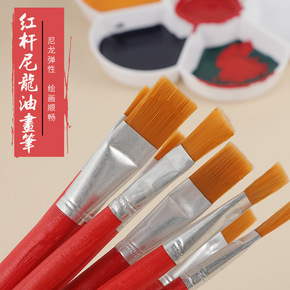 红杆尼龙平头画笔丙烯水彩水粉油画笔油漆刷学生绘画套...