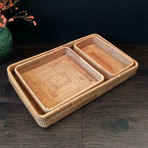 出口日韩批发越南秋藤编织糖果收纳盘 蔬菜水果零食干...