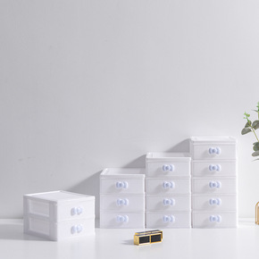 亚马逊塑料抽屉式办公桌面化妆品收纳盒多层收纳柜小饰...