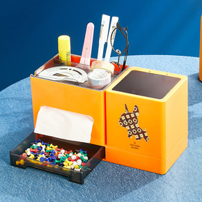 橙色多功能纸巾盒客厅茶几桌面杂物收纳盒可抽纸抽屉式...