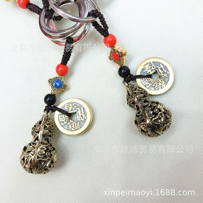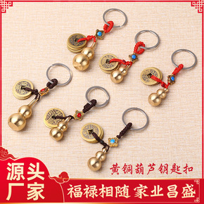 批发纯铜钥匙扣汽车挂件黄铜镂空葫芦小挂件纯铜五帝钱...