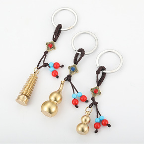 地摊爆款纯黄铜葫芦小铜器 文昌塔钥匙扣 男士汽车个...