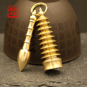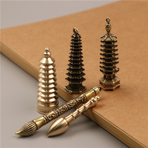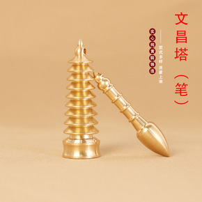 创意黄铜文昌塔 文昌笔钥匙扣挂件纯铜文昌笔塔挂饰学...
