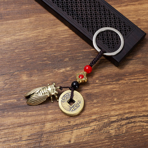 仿黄铜一帆风顺知了五帝钱汽车钥匙扣挂饰地摊货源展销...