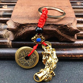 热卖款纯铜小挂件汽车黄铜钥匙扣开运发财义乌货源地摊...