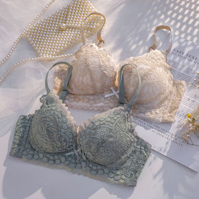 新品内衣女小胸聚拢收副乳无钢圈调整型胸罩蕾丝性感文...