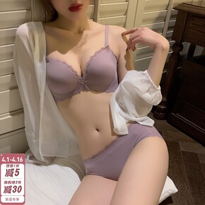 法式简约英伦冰丝文胸套装一片式厚杯少女聚拢无钢圈女...