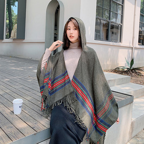 秋冬新款经典英伦风大牌仿羊绒围巾女披肩两用披肩斗篷...