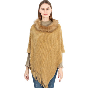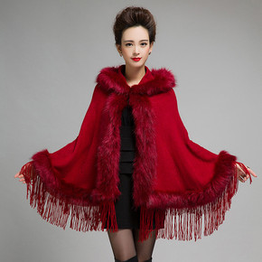 297#欧美连帽流苏仿狐狸毛披肩斗篷大码皮草披肩外...