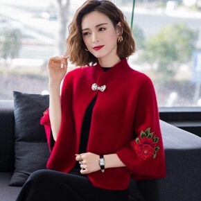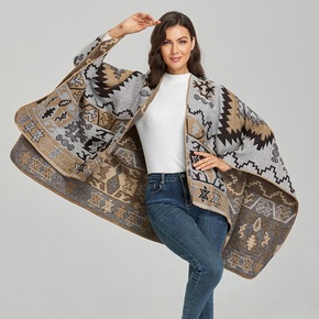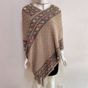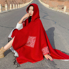 外搭防晒围巾红色民族风针织外套旅游拍照斗篷大披肩女...