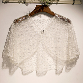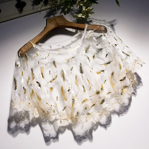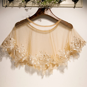 新款金色套头蕾丝披肩薄百搭时尚短款休闲小外套防晒坎...