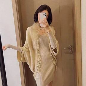 【世纪王妃】3038#欧美兔毛球披肩斗篷 大码针织...