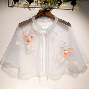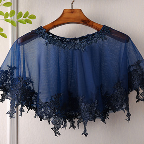 新款藏青色套头百搭蕾丝网短款小披肩坎肩斗篷时尚流行...