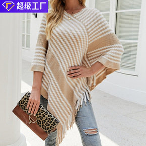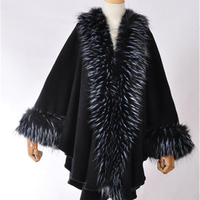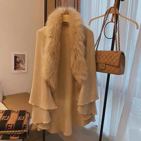 1387#欧美2021秋冬新款仿羊绒斗篷女仿狐狸毛...