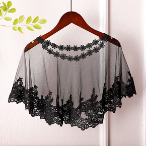 新款防晒套头黑色蕾丝短款披肩百搭超薄斗篷宽松时尚透...