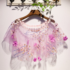 新款粉色蕾丝小外套 短款百搭时尚宽松 套头斗篷披肩...