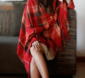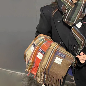 韩代复古格纹围巾女日韩甜美流苏披肩学院风拼色格子披...