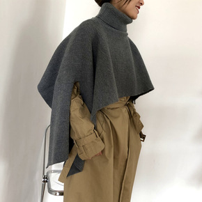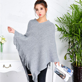 2021欧美新款宽松休闲韩版镂空披肩斗篷毛衣外套流...