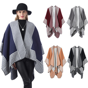 亚马逊跨境2020新款欧美街头条纹仿羊绒女士保暖百...