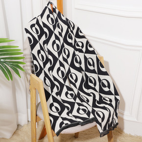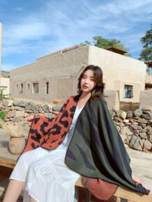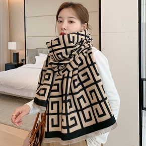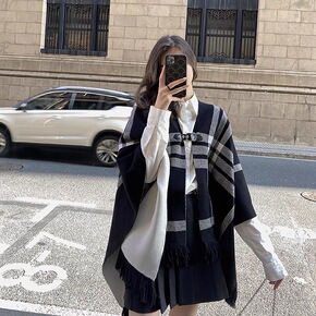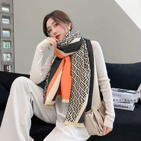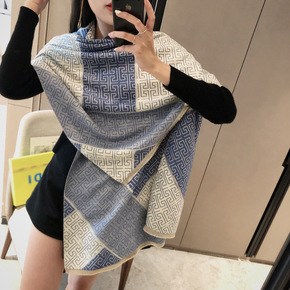 黑米拼色围巾女冬季保暖百搭披肩两用空调房办公室披风...