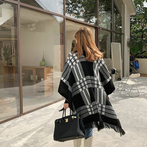 披肩外搭韩版百搭加厚保暖办公室空调房披风秋冬季双面...