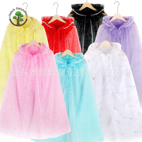 冰雪奇缘爱莎公主披纱女童艾莎长网纱拖地亮片披风万圣...