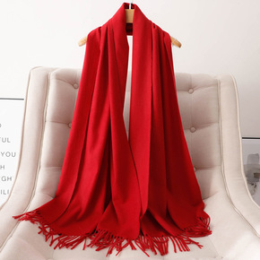 年会仿羊毛围巾男女绣花绣字经编单色通用冬季保暖长方...