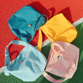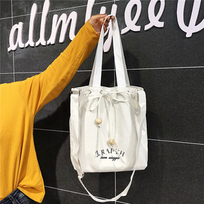 帆布包女单肩学生原宿风木珠抽绳斜挎包批发跨境印lo...