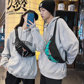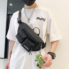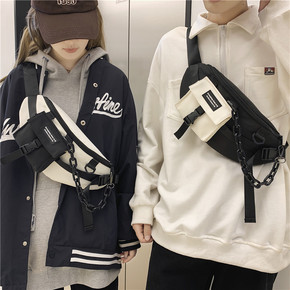 韩版日系原宿运动胸包腰包男港风复古学生工装百搭斜挎...